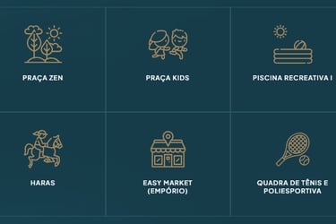 Com infraestrutura completa e clima de resort, você vive cercado por lagos, trilhas, quadras, kart, hipismo, segurança de alto nível e até heliponto — tudo pensado para o seu bem-estar.